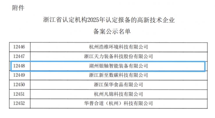 认定报备的高新技术企业备案公示名单》,银轴智能凭借坚实的研发实力、